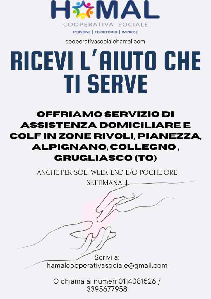 Attivazione di un nuovo servizio di assistenza domiciliare zona Rivoli, Grugliasco, Pianezza, Venaria Reale, Druento, Alpignano e Torino.
