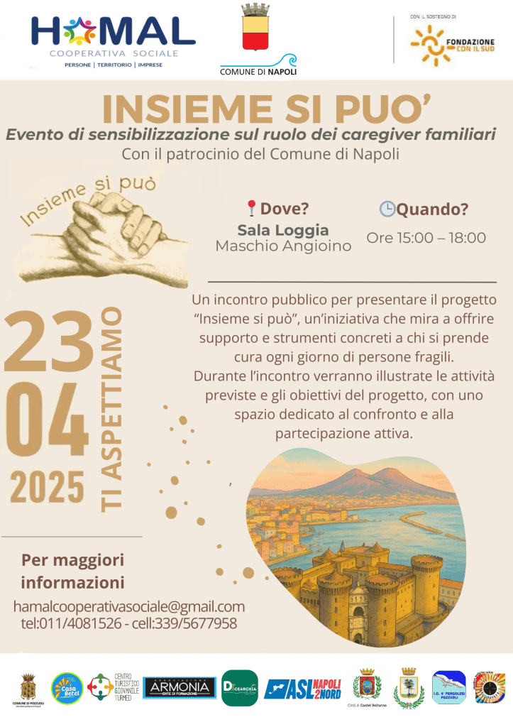Evento di sensibilizzazione progetto “Insieme si può”. Sala della Loggia 23/04/2025 ore 15, Napoli.